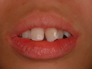 軽くお口を開けた状態の左写真では、パッと見ワイヤーを着けているのが
